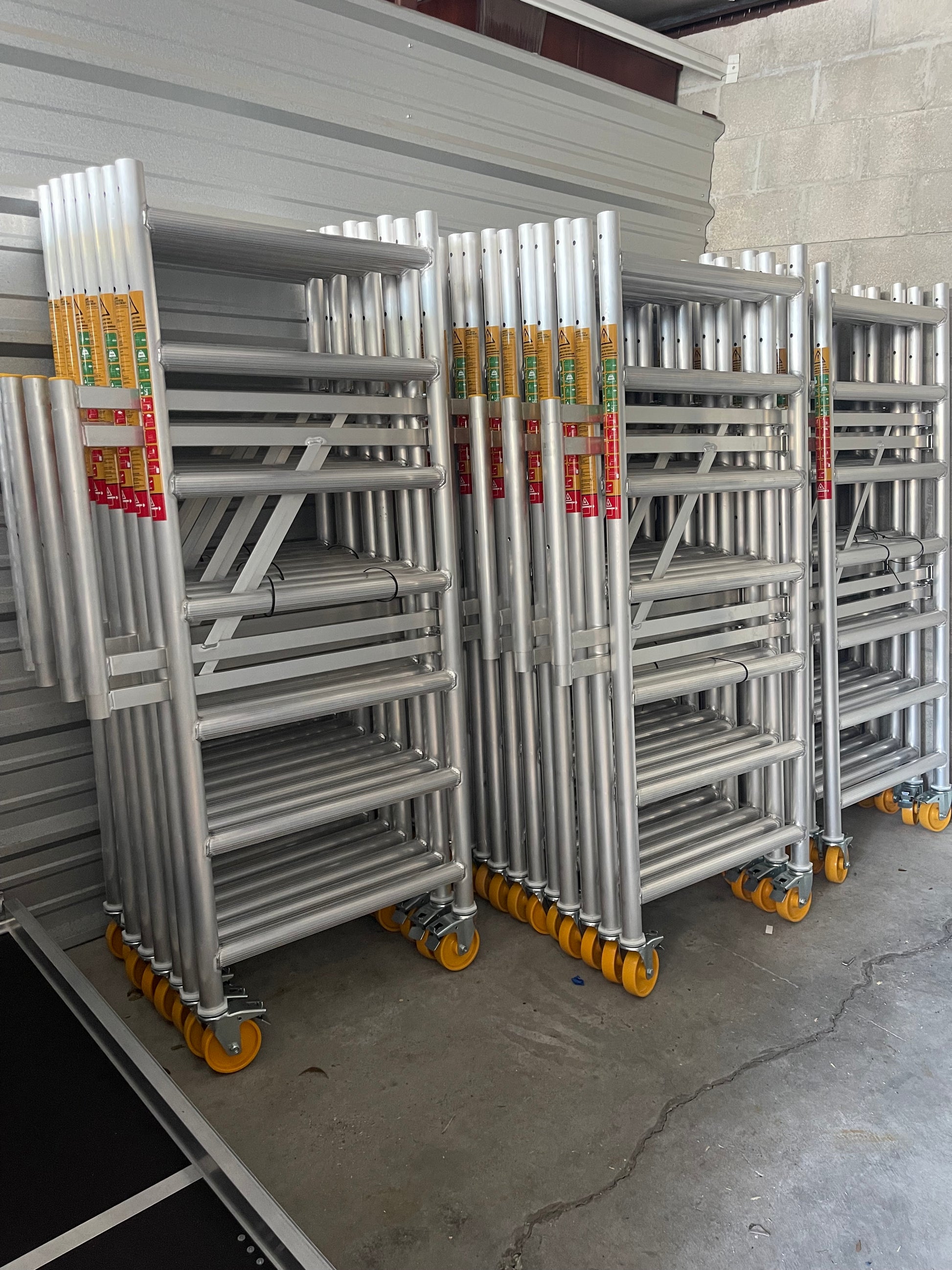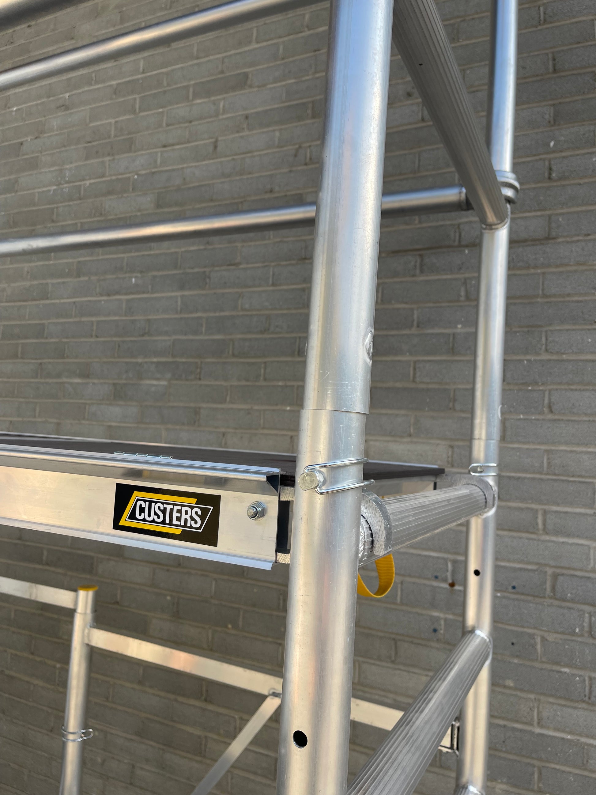 The Custers aluminum folding scaffold is easy to transport and quick to assemble. The platforms, frames and casters are engineered for superior stability and long life service. Platforms are made from extremely climate-proof and water-resistant non-slip sealed floor plates. CUSTERS FOLDY PRO 13 aluminum scaffolds are ready for use within a few minutes and the Outriggers have tool free large wing nuts for tightening the clamps in place.