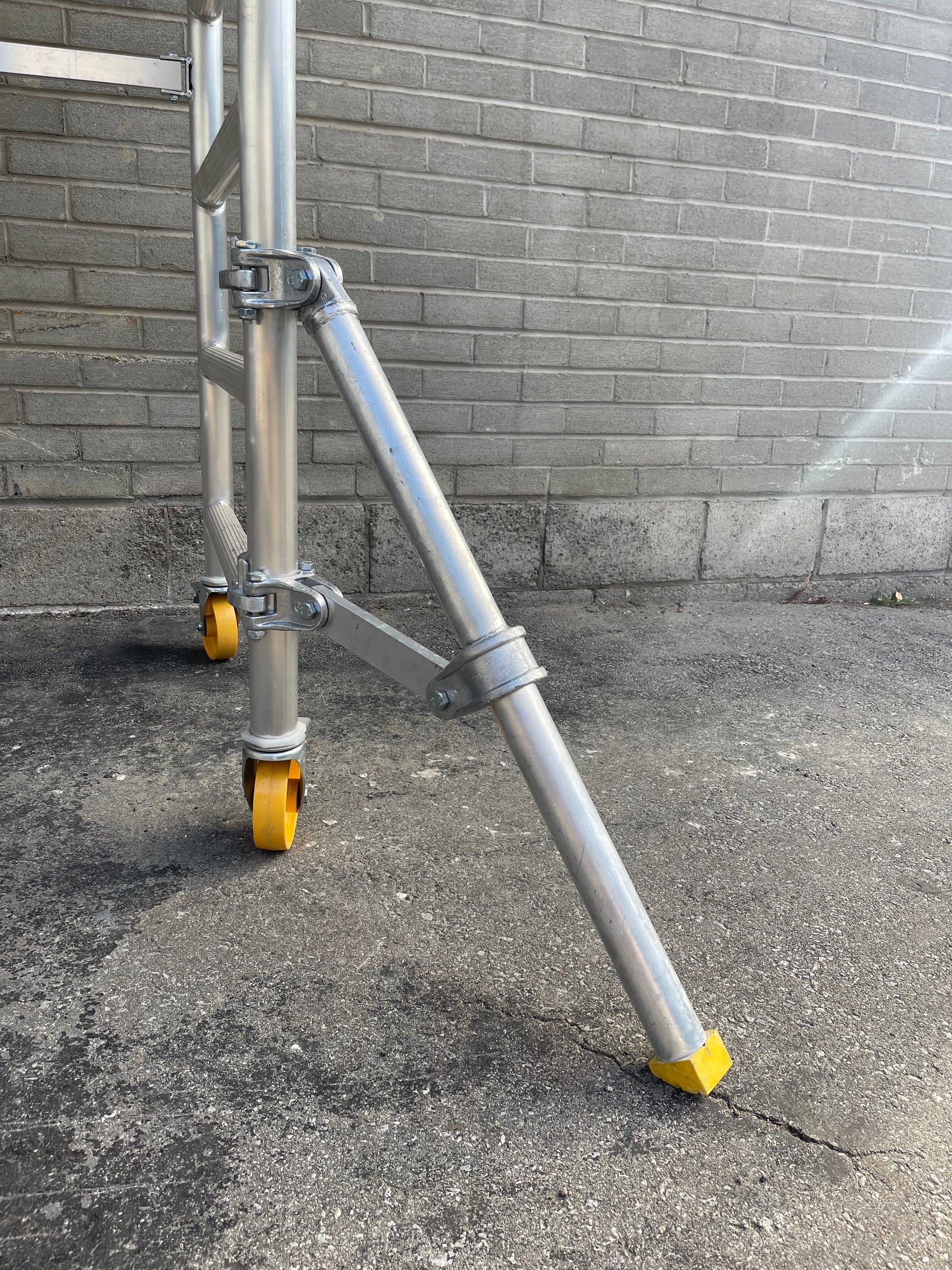 The CUSTERS FOLDY PRO 13 with Outriggers is loved around the world by painters, electricians, insulators, drywallers and DIYers. The Custers Foldy aluminum folding scaffold is the perfect solution for small to medium maintenance and installation activities. The aluminum folding scaffold is the ideal workmate for domestic, office, garage, contractors or factory use. Thanks to its lightweight yet durable construction it is a quick and safe option for jobs requiring reach to up to 12/13 ft. With the added adjustable outriggers that can be positioned at multiple angles, professionals and DIYers feel and work safer knowing they have additional protection to prevent accidents.